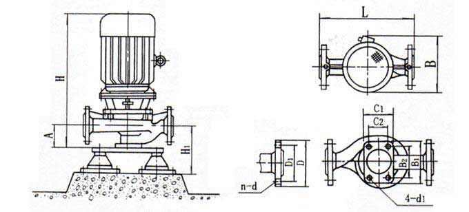 1、泵为立式结构,进出口口径相同,且位于同一中心线上,可象阀门一样安装于管路之中,外形紧凑美观,占地面积小,建筑投入低,如加上防护罩则可置于户外使用。