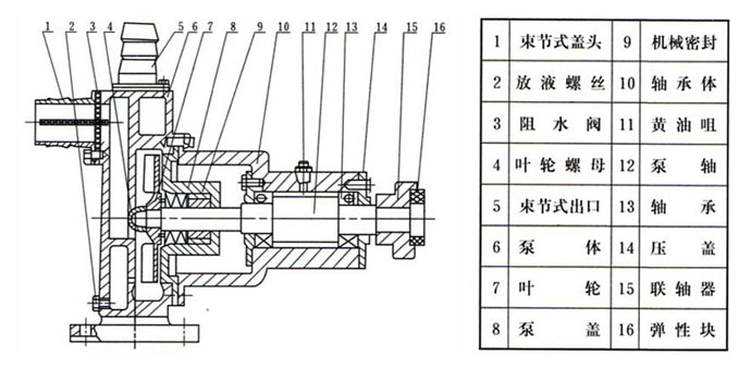 本泵具有结构紧凑、操作简便、体积小、重量轻、性能稳定、不用底阀、起动是不需引灌等特点。该泵更换3~4个零件后便可用于输送浓浆、酸、碱、盐等液体。